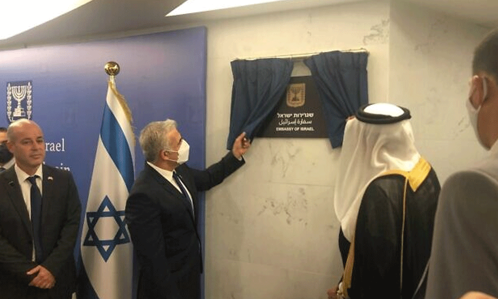 ബഹ്റൈനിലെ ഇസ്രായേൽ എംബസി മനാമയിൽ ഉദ്ഘാടനം ചെയ്തു. ബഹ്റൈൻ വിദേശകാര്യ മന്ത്രി ഡോ. അബ്ദുൽ ലത്തീഫ് ബിൻ റാഷിദ് അൽ സയാനിയും ഇസ്രായേൽ വിദേശകാര്യ മന്ത്രി യായിർ ലാപിഡും ചേർന്നാണ് എംബസി ഉദ്ഘാടനം ചെയ്തത്.