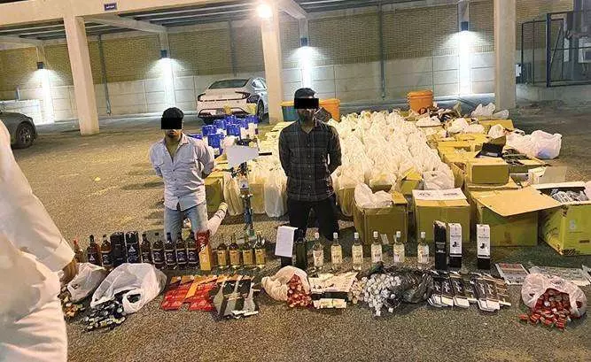 രഹസ്യ വിവരത്തെ തുടര്ന്ന് നടത്തിയ അന്വേഷണത്തിലാണ് പ്രതികളെ ഉദ്യോഗസ്ഥര് അറസ്റ്റ് ചെയ്തത്. ഇറക്കുമതി ചെയ്തതും തദ്ദേശീയമായി നിർമിച്ചതുമായ മദ്യകുപ്പികളാണ് പിടിച്ചെടുത്തതെന്ന് അധികൃതര് അറിയിച്ചു. പിടിയിലായവരെ തുടര് നിയമ നടപടികള്ക്കായി ബന്ധപ്പെട്ട വകുപ്പുകള്ക്ക് കൈമാറി.