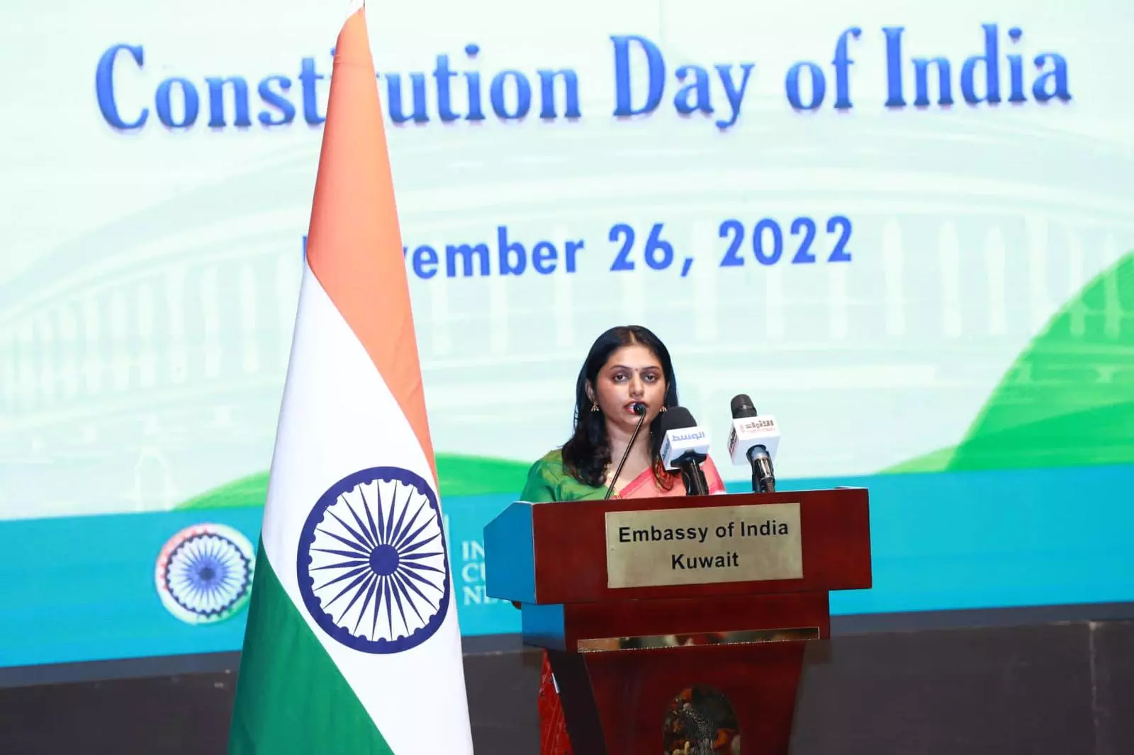 ഇന്ത്യൻ എംബസി 72ാമത് ഭരണഘടനാ ദിനം ആഘോഷിച്ചു. ചാർജ് ഡി അഫയേഴ്സ് സ്മിത പാട്ടീൽ ചടങ്ങുകൾക്ക് നേതൃത്വം നൽകി.