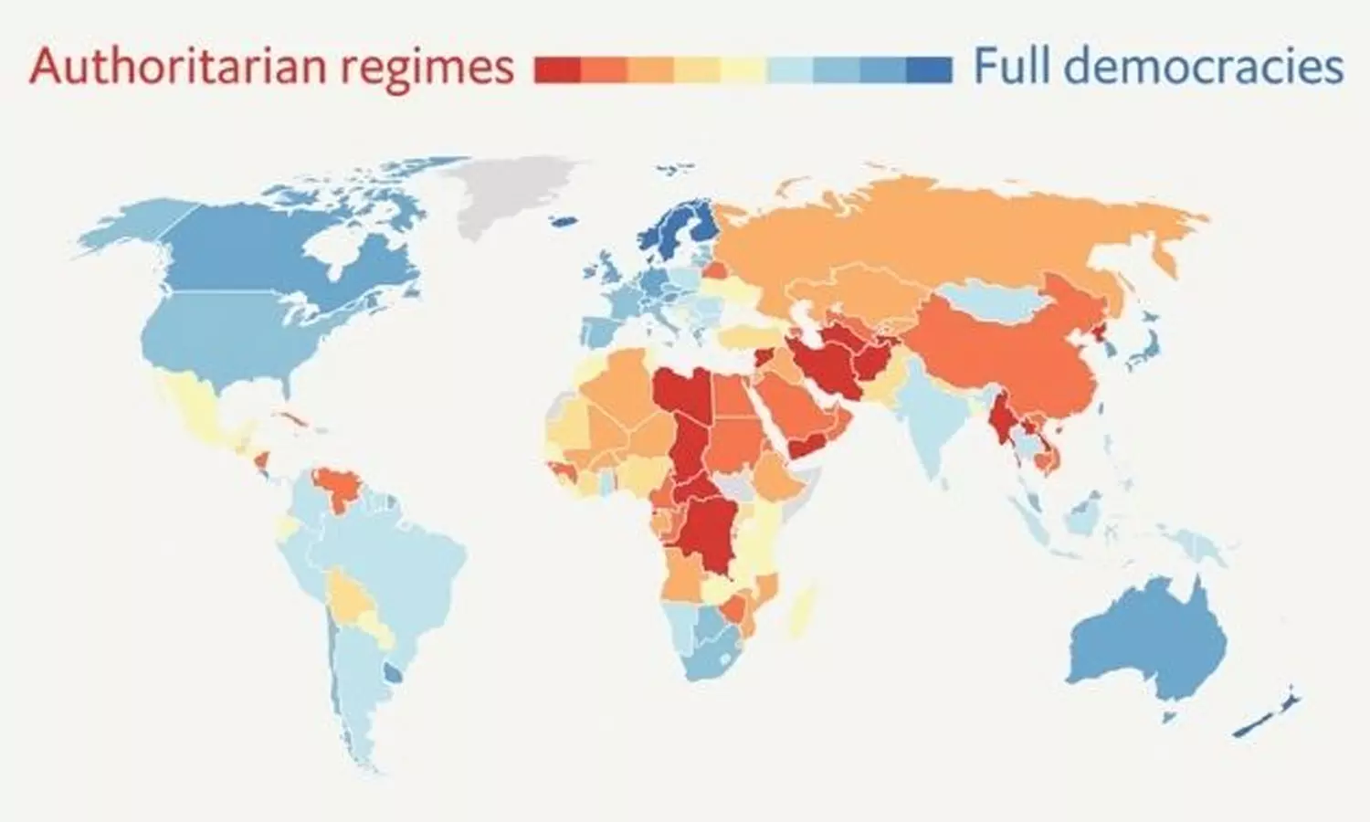 |ബ്രിട്ടീഷ് ഇക്കണോമിസ്റ്റിന്റെ ഇൻഫർമേഷനാണ് വേൾഡ് ഡെമോക്രസി ഇൻഡക്സ് പട്ടിക പ്രസിദ്ധീകരിച്ചത്