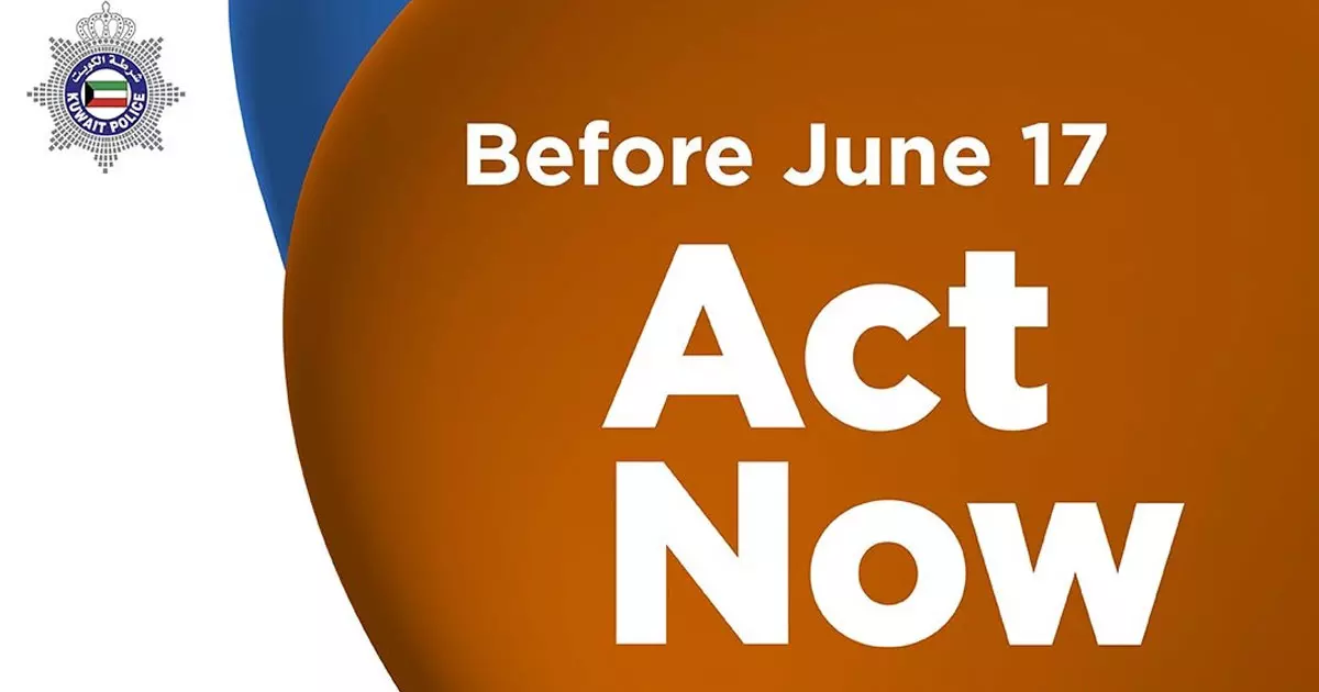 |ജൂൺ 17ന് മുമ്പായി നടപടികൾ ചെയ്യാനാണ് കുവൈത്ത് ആഭ്യന്തര മന്ത്രാലയം സമൂഹ മാധ്യമങ്ങളിലെ ഔദ്യോഗിക അക്കൗണ്ടുകളിലൂടെ ആവശ്യപ്പെട്ടത്
