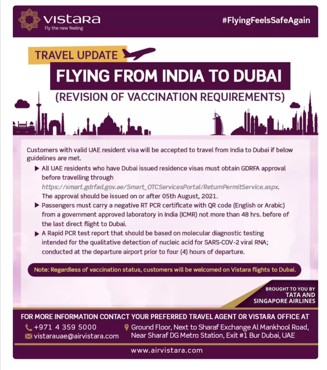ഇന്ത്യയില് കോവിഷീല്ഡ് വാക്സിന് സ്വീകരിച്ചവര്ക്ക് ദുബൈയിലേക്ക് മടങ്ങാമെന്ന് നേരത്തെ വിമാനകമ്പനികള് ട്രാവല് ഏജന്സികള്ക്ക് നല്കിയ നിര്ദേശത്തില് സൂചിപ്പിച്ചിരുന്നു