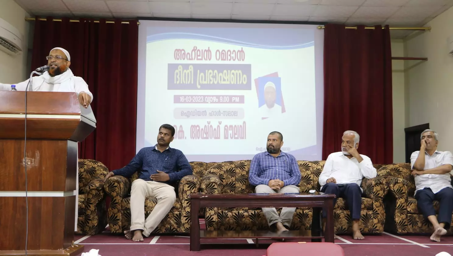'അഹ് ലൻ റമദാൻ' റമദാന് സ്വാഗതം എന്ന തലക്കെട്ടിൽ ഐ.എം.ഐ സലാല പ്രഭാഷണം സംഘടിപ്പിച്ചു. ഐഡിയൽ ഹാളിൽ നടന്ന പരിപാടിയിൽ കെ. അഷറഫ് മൗലവി മുഖ്യ പ്രഭാഷണം നടത്തി.