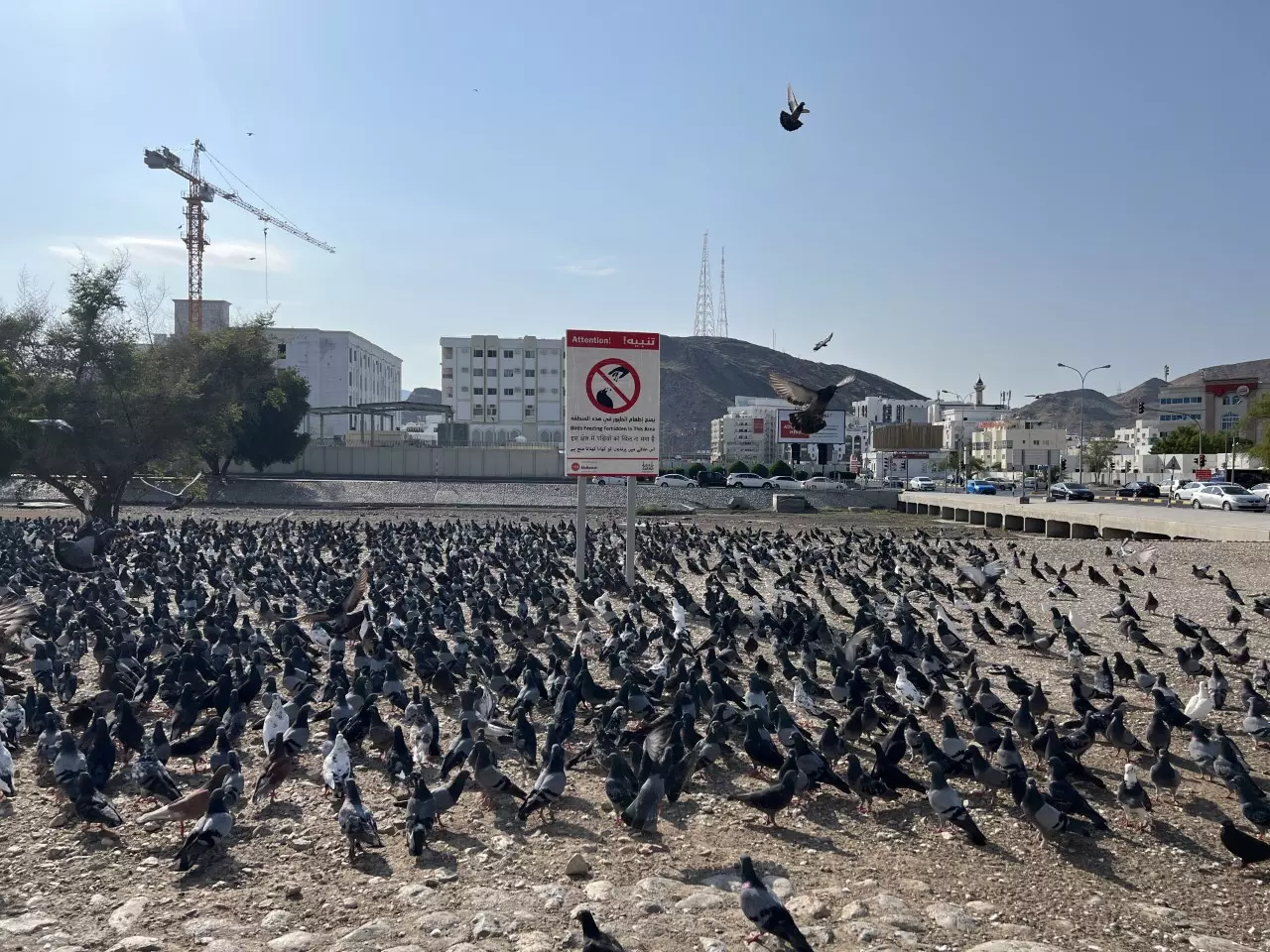 റൂവി, അൽ ഖുവൈർ, മസ്കത്ത്, വാദി കബീർ, ബൗശർ, ഗുബ്ര, സീബ് തുടങ്ങി തലസ്ഥാനത്തിന്റെ വിവിധ ഭാഗങ്ങളിൽ പൊതുജനങ്ങൾ പക്ഷികൾക്ക് ഭക്ഷ്യ ഉത്പന്നങ്ങൾ നൽകുന്നത് സാധാര കാഴ്ചയാണ്. പ്രാവുകളാണ് ഇത്തരത്തിൽ തീറ്റ തേടി എത്തുന്നവരിൽ ഭൂരിഭാഗവും. ചിലയിടങ്ങളിൽ ചെറു സംഘങ്ങളായാണ് പക്ഷികളെത്തുന്നതെങ്കിൽ റൂവിയിലെ മസ്കത്ത് സെക്യൂരിറ്റി മാർക്കറ്റിന് സമീപത്തെ ഒഴിഞ്ഞ സ്ഥലത്ത് വലിയ എണ്ണം പ്രാവുകളെ കാണാം. സ്വദേശികളും വിദേശികളും ധാന്യങ്ങളും ഭക്ഷ്യ വസ്തുക്കളുമായി എത്താറുണ്ട്.