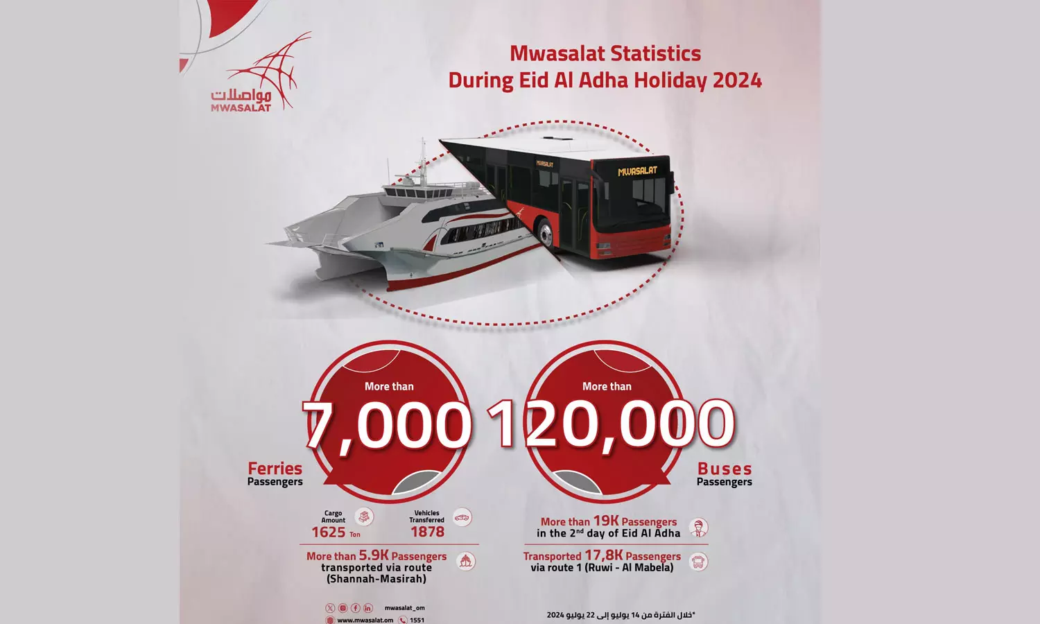 മസ്കത്ത് : ഒമാനിൽ ബലി പെരുന്നാൾ അവധി ദിനങ്ങളിൽ മുവാസലാത്തിന്റെ പൊതുഗതാഗതം ഉപയോഗിച്ചത് ഒരു ലക്ഷത്തിലധികം യാത്രകാർ. സാധാരണക്കാരായ ആളുകളും കുറഞ്ഞ വരുമാനക്കാരായി പ്രവാസികളുമാണ് മുവാസലാത്ത് സർവീസുകൾ കൂടുതലായി ഉപയോഗപ്പെടുത്തിയത്.