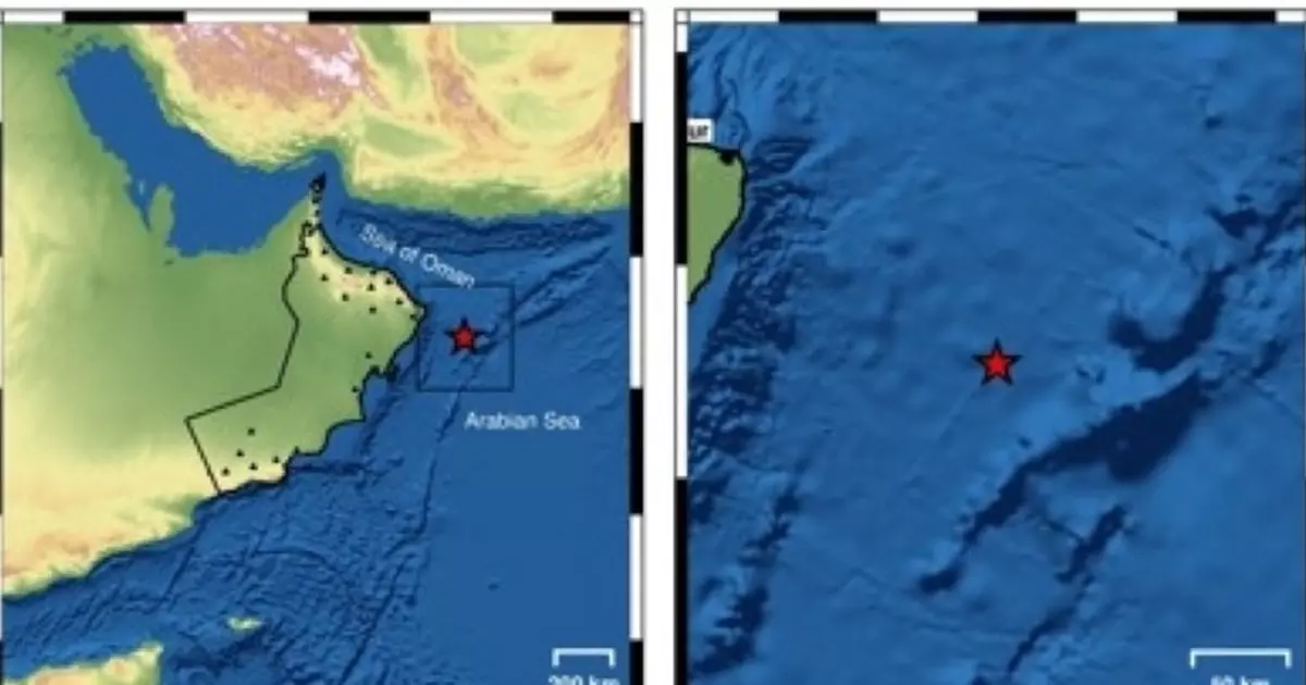 ഒമാനിലെ സൂറിൽ നിന്ന് ഏകദേശം 198 കിലോമീറ്റർ തെക്കുകിഴക്കായി അറബിക്കടലിൽ നേരിയ ഭൂചലനം