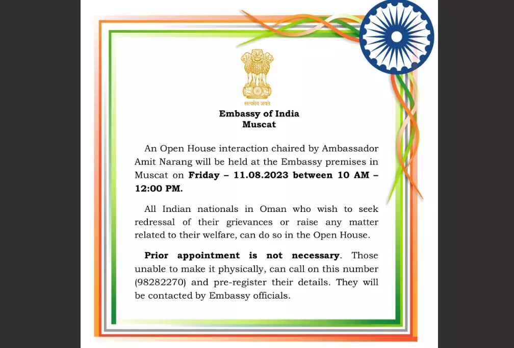 മസ്കത്ത് ഇന്ത്യന് എംബസി ഓപ്പണ് ഹൗസ് രാവിലെ 10 മുതൽ