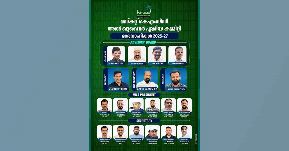 മസ്കത്ത് കെഎംസിസി അൽ ഖുവൈർ ഏരിയ കമ്മറ്റിയുടെ പുതിയ നേതൃത്വം നിലവിൽ വന്നു