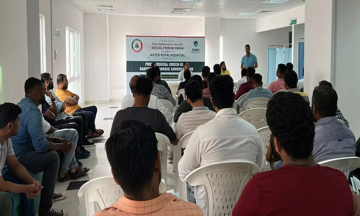 മസ്ക്കത്ത്: 75-ാം ഇന്ത്യൻ സ്വാതന്ത്ര്യ ദിനാഘോഷത്തിന്റെ ഭാഗമായി സോഷ്യൽ ഫോറം ഒമാനും, ആസ്റ്റർ റോയൽ ഹോസ്പിറ്റലും സംയുക്തമായി സൗജന്യ മെഡിക്കൽ ക്യാമ്പും, ഉദര രോഗ പരിശോധനയും സംഘടിപ്പിച്ചു. അൽ റഫ സെന്റർ ഫോർ എക്സലൻസ് ബിൽഡിംഗ് വെച്ച് നടന്ന ക്യാമ്പിൽ സമൂഹത്തിന്റെ നാനാ തുറകളിൽ നിന്നുള്ള നൂറോളം പ്രവാസികൾ സംബന്ധിച്ചു.