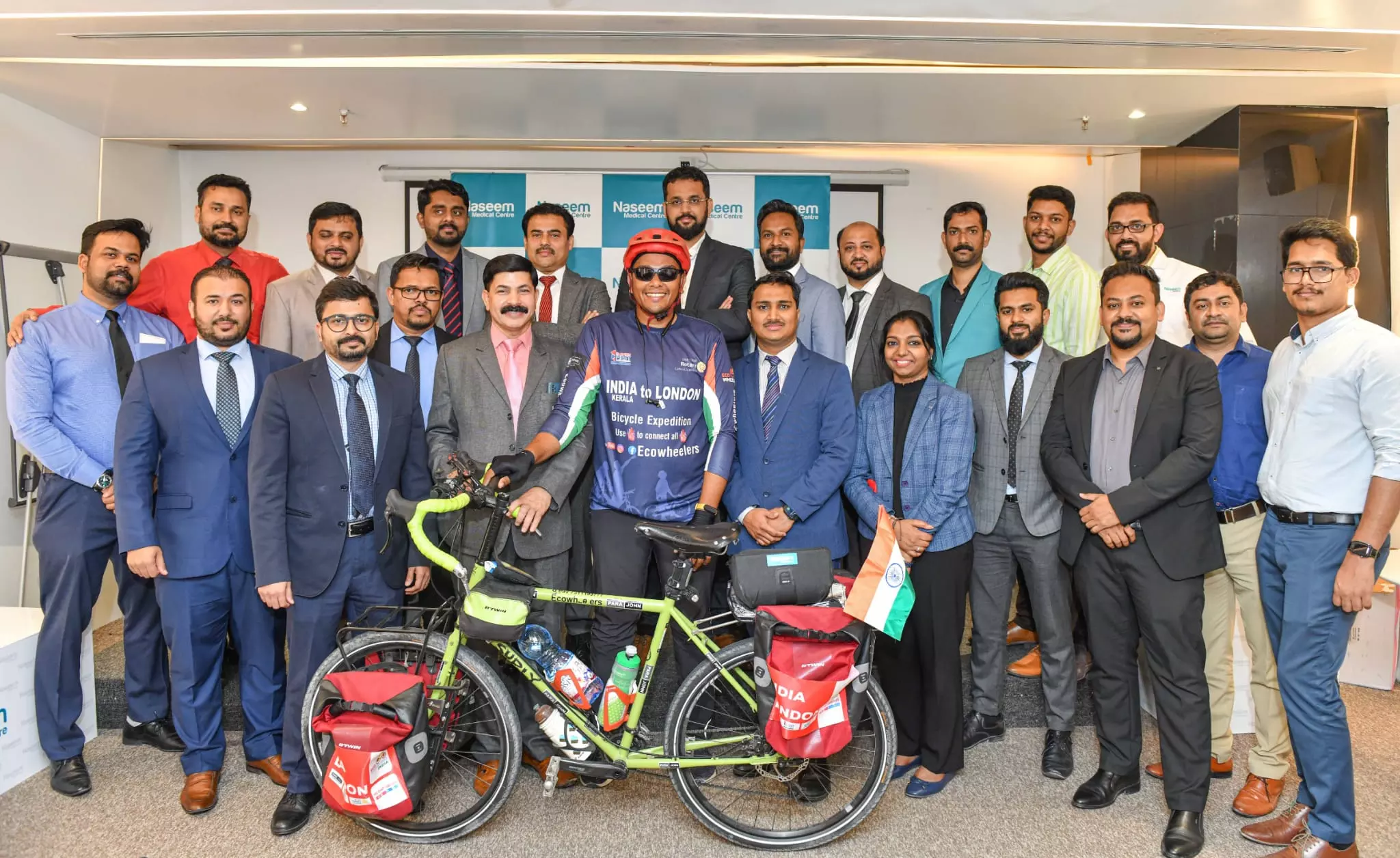 കേരളത്തിൽ നിന്നും ലണ്ടനിലേക്ക് സൈക്കിളിൽ സാഹസിക യാത്ര നടത്തുന്ന ഫായിസ് അഷ്റഫിന് ഖത്തറിൽ നസീം ഹെൽത്ത് കെയർ സ്വീകരണം നൽകി.