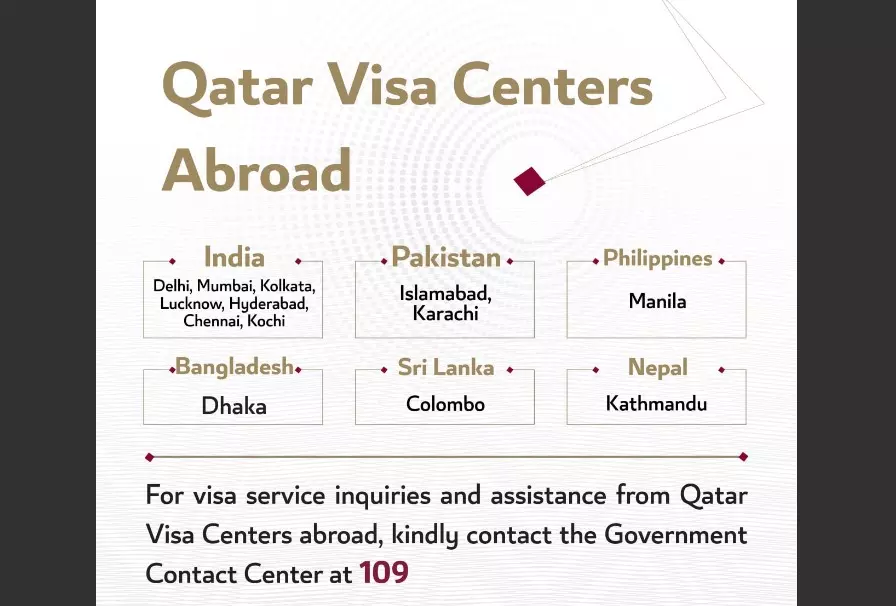 109 എന്ന നമ്പരിലാണ് സേവനത്തിനായി വിളിക്കേണ്ടത്. കേരളത്തില് കൊച്ചിയിലാണ് ഖത്തര് വിസ സെന്റര് പ്രവര്ത്തിക്കുന്നത്. ഇന്ത്യയില് ആകെ ഏഴ് ക്യുവിസികളാണ് ഉള്ളത്.