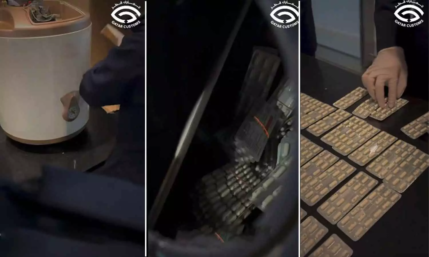 |യാത്രക്കാരന്റെ ലഗേജിലെ വാട്ടർ ഹീറ്ററിനുള്ളിൽ ഒളിപ്പിച്ച നിലയിലായിരുന്ന നിരോധിത ലിറിക ഗുളികകളാണ് ഖത്തർ കസ്റ്റംസ് പിടികൂടിയത്