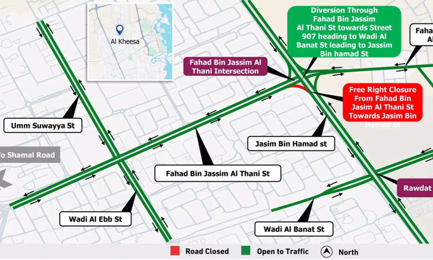 അറ്റകുറ്റപ്പണികൾക്കു വേണ്ടി ഖത്തറിലെ ഫഹദ് ബിൻ ജാസിം അൽ ഥാനി ഇൻറർസെക്ഷനിൽ റോഡ് അടച്ചു
