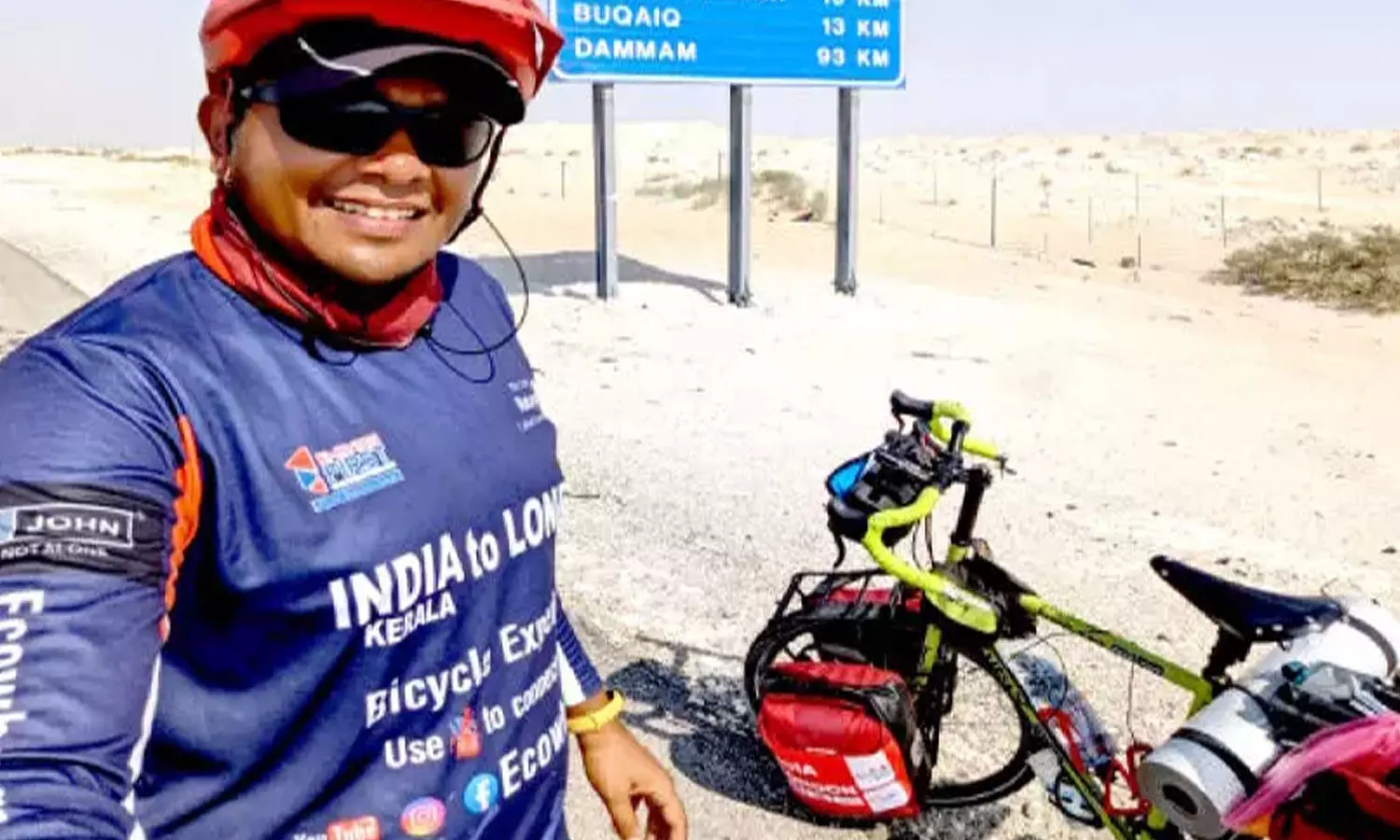 സൈക്കിളിൽ ഭൂഖണ്ഡങ്ങൾ താങ്ങി സാഹസികയാത്ര: നാല് രാജ്യങ്ങൾ പിന്നിട്ട് സൗദിയിലെത്തി ഫായിസ്