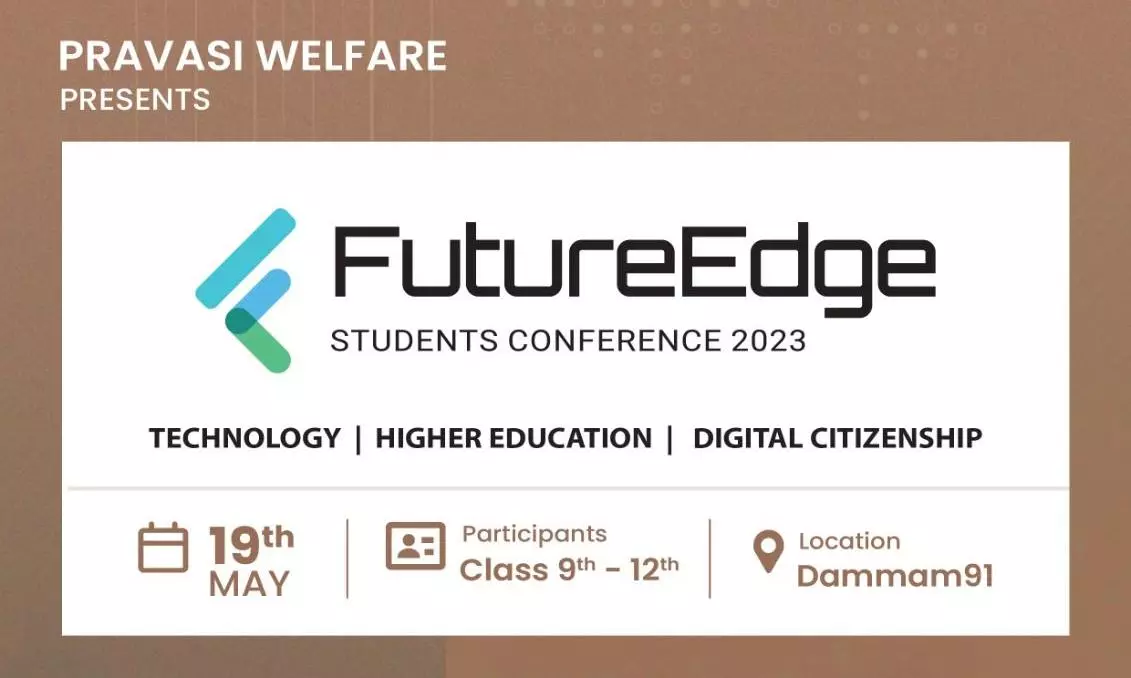 ഒൻപതു മുതൽ പന്ത്രണ്ടാം ക്ലാസ് വരെയുള്ള മലയാളി വിദ്യാർഥികൾക്കായി പ്രവാസി വെൽഫെയർ ദമ്മാമിൽ സംഘടിപ്പിക്കുന്ന ഫ്യൂച്ചർ എഡ്ജ് കോൺഫറൻസ് മെയ് 19ന് നടക്കും.