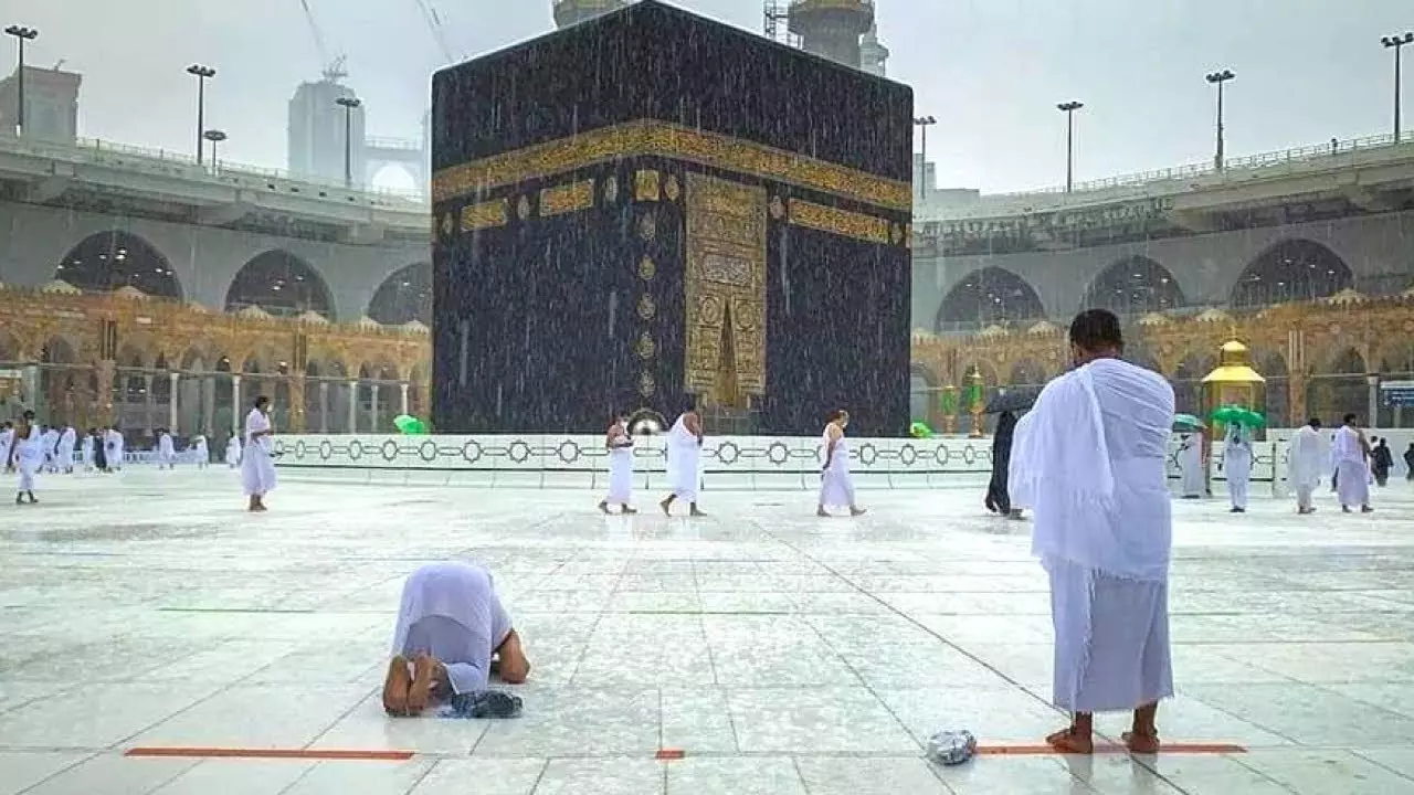 |ഹറമിൽ നനഞ്ഞാണ് തീർഥാടകർ രാവിലെ കർമങ്ങൾ പൂർത്തിയാക്കിയത്.