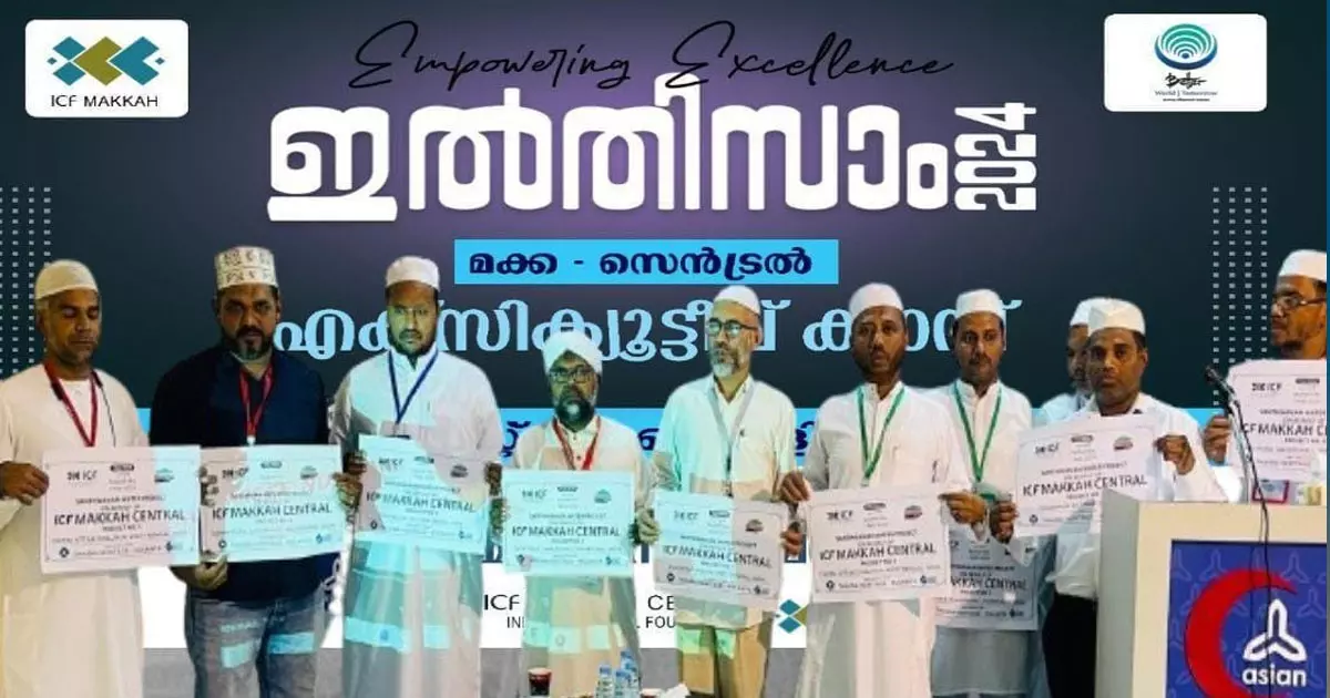 മക്ക സെൻട്രൽ 'ഇൽത്തിസം 2024 ' എക്സിക്യൂട്ടീവ് ക്യാമ്പിൽ കേരള മുസ്ലിം ജമാഅത്ത് പ്രതിനിധി മുഹമ്മദ് മാസ്റ്റർ പറവൂരിന്റെ സാന്നിധ്യത്തിൽ ഐസിഎഫ് ക്യാബിനറ്റ് അംഗങ്ങൾ അവ നാടിന് സമർപ്പിച്ചു. ചടങ്ങിൽ സെൻട്രൽ പ്രസിഡന്റ് ഷാഫി ബാഖവി അധ്യക്ഷ്യതവഹിച്ചു. ഐസിഎഫ് മക്ക പ്രൊവിൻസ് ഓർഗാനൈശേഷൻ പ്രസിഡന്റ് അബ്ദു നാസ്വിർ അവരി ഉദ്ഘാടനവും മുഹമ്മദ് മാസ്റ്റർ പറവൂർ മുഖ്യപ്രഭാഷണവും നടത്തി. ത്വൽഹത്ത് മാത്തോട്ടം, ഹമീദ് പൂക്കോടൻ, സൽമാൻ വെങ്ങളം, അബൂബക്കർ കണ്ണൂർ, റഷീദ് വേങ്ങര, നാസർ തച്ചംപൊയിൽ, ഷഹീർ കോട്ടക്കൽ എന്നിവർ സംബന്ധിച്ചു. ശിഹാബ് കുറുകത്താണി സ്വാഗതാവും ജമാൽ കക്കാട് നന്ദിയും പറഞ്ഞു.