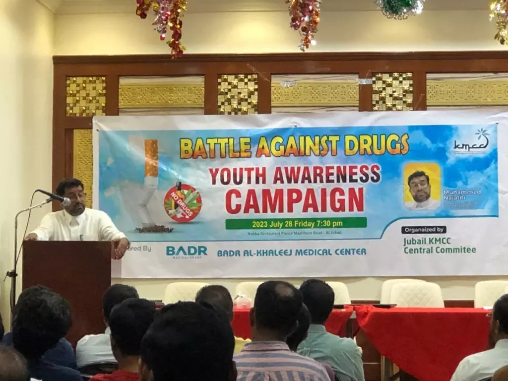 |ജുബൈൽ: മയക്കുമരുന്ന് കേസുകളിൽ ഉൾപ്പെടുന്ന മലയാളികളുടെ എണ്ണം ആശങ്ക ഉണർത്തുന്നതാണെന്ന് ദമ്മാം ക്രിമിനൽ കോടതി ഉദ്യോഗസ്ഥനായ അഹ്മദ് നജാത്തി. സൗദി ഭരണകൂടം വളരെ ഗൗരവത്തോടെയാണ് ഇത്തരം കേസുകളെ വീക്ഷിക്കുന്നത്. യുവജന ബോധവത്കരണത്തിന്റെ ഭാഗമായി 'ബാറ്റിൽ എഗൈൻസ്റ്റ് ഡ്രഗ്സ്' എന്ന തലക്കെട്ടിൽ ജുബൈൽ കെ.എം.സി.സി. സെൻട്രൽ കമ്മിറ്റി സംഘടിപ്പിക്കുന്ന ത്രൈമാസ പ്രചാരണത്തിന്റെ രണ്ടാം ഘട്ട പരിപാടിയിൽ മുഖ്യ പ്രഭാഷണം നടത്തുകയായിരുന്നു അദ്ദേഹം.