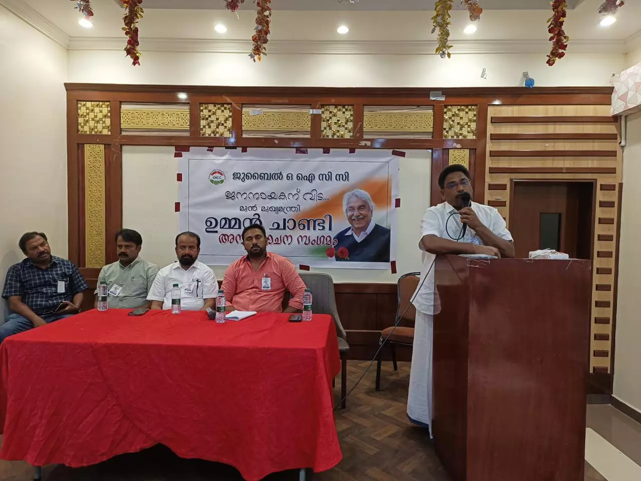 ജുബൈൽ ഒഐസിസി അഡ്ഹോക്ക് കമ്മറ്റി കൺവീനർ നജീബ് നസിർ അധ്യക്ഷത വഹിച്ചു. ഗ്ലോബൽ കമ്മറ്റി സെക്രട്ടറി അഷ്റഫ് മുവാറ്റുപുഴ ഉദ്ഘാടനം നിർവഹിച്ചു. ഉമ്മൻ ചാണ്ടിയുടെ മഹത്വം പൂർണ്ണമായും പാർട്ടിയും, കേരളവും തിരിച്ചറിഞ്ഞത് അദ്ദേഹത്തിന്റെ മരണ ശേഷമാണന്നും, അതിന്റെ തെളിവാണു വിലാപ യാത്രയും അന്തിമോപചാരമർപ്പിക്കാൻ തടിച്ച് കൂടിയ ജനവും തെളിയിക്കുന്നതന്നു ഉദ്ഘാടന പ്രസംഗത്തിൽ അഷ്റഫ് മുവാറ്റുപുഴ പറഞ്ഞു. യൂത്ത് വിങ് പ്രസിഡന്റ് ഉസ്മാൻ കുന്നകുളം സ്വാഗതം അർപ്പിച്ചു.