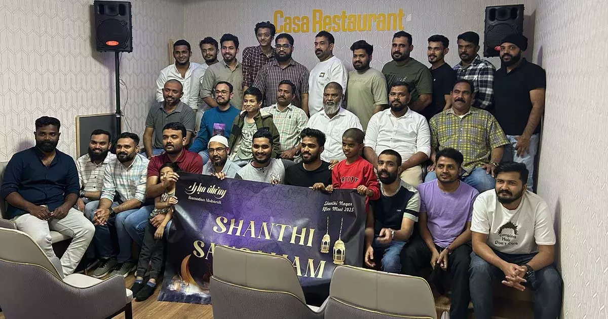 ദമ്മാം: മലപ്പുറം വാണിയമ്പലം ശാന്തി നഗർ നിവാസികളുടെ കൂട്ടായ്മയായ ശാന്തി സംഗമം ഇഫ്താർ മീറ്റ് സംഘടിപ്പിച്ചു. അൽഖോബാറിലെ കാസ റെസ്റ്റോറന്റിൽ സംഘടിപ്പിച്ച സംഗമത്തിൽ കിഴക്കൻ പ്രവിശ്യയുടെ വിവിധ ഭാഗങ്ങളിൽ നിന്നുള്ള ശാന്തി നിവാസികൾ പങ്കെടുത്തു. കൂട്ടായ്മയുടെ നാൾ വഴികൾ വിശദീകരിച്ച് കൊണ്ട് മുൻ രക്ഷാധികാരി എ.പി അബ്ദുൽ നാസർ സംസാരിച്ചു. പരസ്പരം അടുത്തറിയാനും ബന്ധങ്ങളുടെ ഇഴയടുപ്പം വർധിപ്പിക്കാനുമുതകുന്ന പരിപാടികളുടെ പ്രാധ്യാനം അദ്ദേഹം എടുത്തു പറഞ്ഞു. ചടങ്ങിൽ നിർവാഹക സമിതി അംഗങ്ങളായ എ.പി.അബ്ദുൽറഹ്മാൻ, അർശദ് അലി, ഷൈജൽ, എ.പി സഹീർ, എം. ജാസിം, പി.സി സൽമാൻ എന്നിവർ സംസാരിച്ചു.