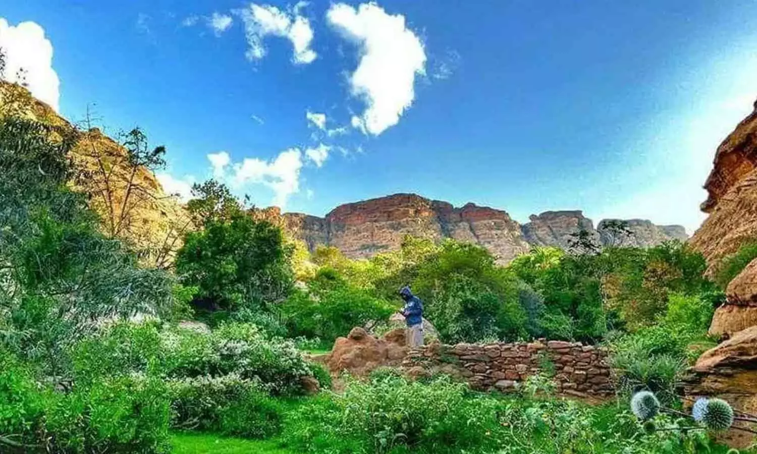 മഴക്ക് പിറകെ പച്ചപുതച്ച് സന്ദർശകരെ ആകർഷിക്കാൻ ഒരുങ്ങി സൗദിയിലെ ഹറൂബ്ബ് ഗവർണറേറ്റ്. മലകളാൽ ചുറ്റപ്പെട്ട പ്രദേശമായ ഹറൂബിൽ കഴിഞ്ഞാഴ്ച മഴയെത്തിയതോടെയാണ് എങ്ങും പച്ചപ്പ് നിറഞ്ഞത്. തുറമുഖ നഗരമായ ജീസാനിൽനിന്ന് ഒരു മണിക്കൂർ സഞ്ചരിച്ചാൽ എത്താവുന്ന പ്രദേശമാണിത്. ശുദ്ധജല അരുവികളാൽ നിറഞ്ഞ ഈ പ്രദേശത്ത് പഴങ്ങളുടെയും പച്ചക്കറികളുടെയും കൃഷിതോട്ടങ്ങളും കാണാം.