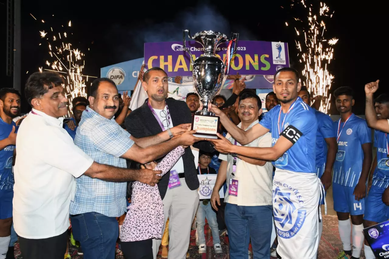 |അല് കോബാര് യുനൈറ്റഡ് എഫ്.സിയുടെ പതിനഞ്ചാം വാര്ഷികത്തിന്റെ ഭാഗമായി സംഘടിപ്പിച്ച ഗാലപ്പ് ചാമ്പ്യന്സ് കപ്പ് ഇലവന്സ് ഫുട്ബോള് മേളയുടെ കലാശപ്പോരാട്ടത്തില് കോര്ണിഷ് സോക്കറിനെ പരാജയപ്പെടുത്തി ദിമാ ടിഷ്യു ഖാലിദിയ എഫ് സി കിരീട ജേതാക്കളായി.