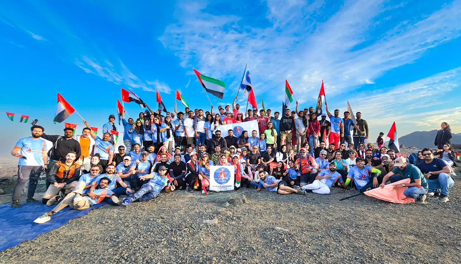 യുഎഇയുടെ 52ാം ദേശീയ ദിനം വിപുലമായി മലമുകളിൽ ആഘോഷിച്ച് ഗൾഫ് രാജ്യങ്ങളിലെ സാഹസിക സഞ്ചാരികളുടെ ഏറ്റവും വലിയ കൂട്ടായ്മയായ A4A അഡ്വഞ്ചർ. റാസല്ഖൈമയിലെ വാദി ഷൗക്ക മലനിരകളില് ഡിസംബര് നാലിന് പുലർച്ചെ 5 മണിയോടെ നടന്ന പരിപാടിയിൽ കുട്ടികളും മുതിർന്നവരും അടക്കം 130 ഓളം പേര് പങ്കെടുത്തു.