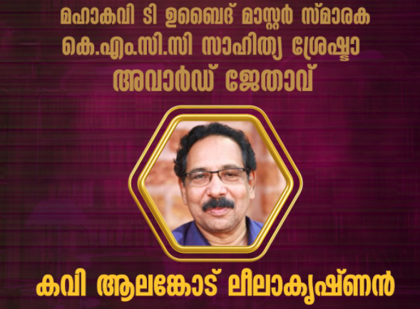 മഹാകവി ടി ഉബൈദ് മാസ്റ്റർ സ്മാരക കെ.എം.സി.സി സാഹിത്യ ശ്രേഷ്ടാ അവാർഡ് കവി ആലങ്കോട് ലീലാകൃഷ്ണന്