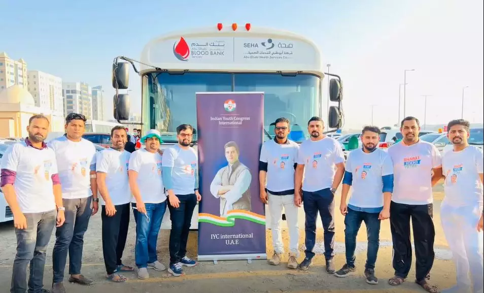 അഖിലേന്ത്യാ യൂത്ത് കോൺഗ്രസ് കമ്മിറ്റിയുടെ നിർദ്ദേശത്തോടെ ഭാരത് ജോഡോ യാത്രക്ക് അഭിവാദ്യങ്ങൾ അർപ്പിച്ചുകൊണ്ട് അബൂദബിയിൽ രക്തദാന ക്യാമ്പ് സംഘടിപ്പിച്ചു. ഭാരത് ജോഡോ യാത്രയുടെ പ്രചരണാർത്ഥമുള്ള ടീ ഷർട്ടുകൾ ധരിച്ചാണ് യൂത്ത് കോൺഗ്രസ് പ്രവർത്തകർ രക്തദാന ക്യാമ്പ് സംഘടിപ്പിച്ചത്.