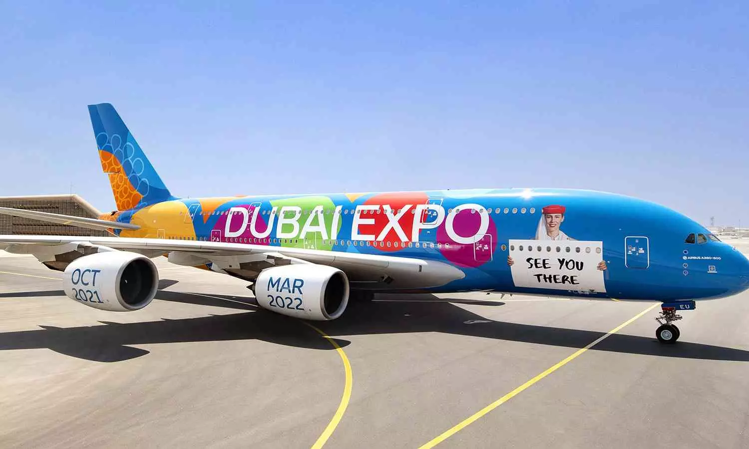 സീ യു ദേര്; ദുബൈ എക്സ്പോയുടെ പ്രചരണത്തിന്റെ ഭാഗമായി അണിഞ്ഞൊരുങ്ങി എമിറേറ്റ്സ് വിമാനം