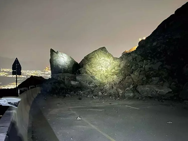 പാറ വീണതിനെ തുടർന്ന് ഖോർഫുകാനിൽ റോഡ് അടച്ചു