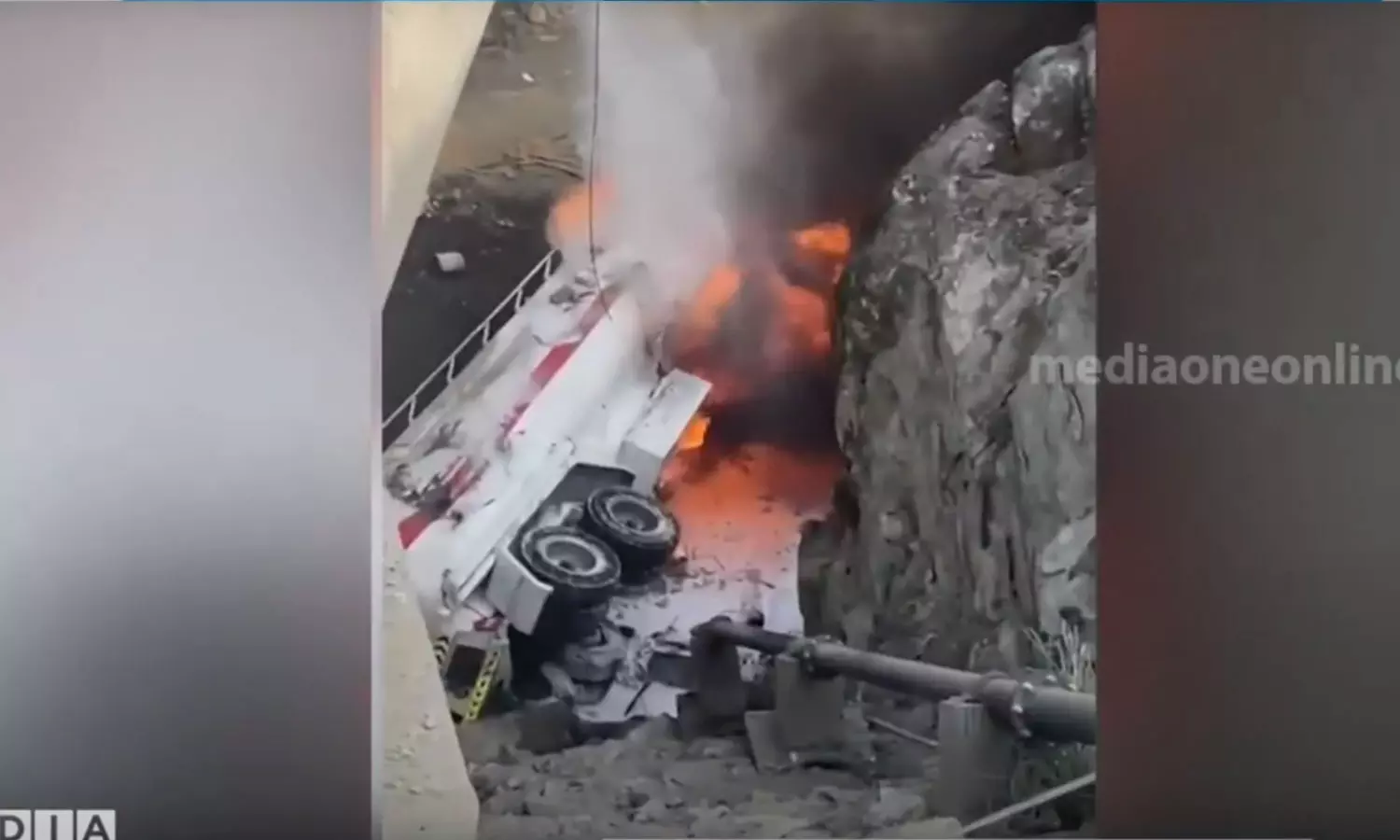 ഓയിൽ ടാങ്കർ റോഡിൽ നിന്ന് മലയിടുക്കിലേക്ക് മറിഞ്ഞ് തീപിടിക്കുകയായിരുന്നു. അപകടത്തിൽ പരിക്കേറ്റവരെ നാഷണൽ സെർച്ച് ആൻഡ് റെസ്ക്യൂ സെന്ററിന്റെ ഹെലികോപ്ടർ എത്തിയാണ് ഫുജൈറ ആശുപത്രിയിലേക്ക് മാറ്റിയത്. ടാങ്കറിലുണ്ടായിരുന്ന ഏഷ്യൻ പ്രവാസിയെ നേരത്തേ പുറത്തെടുത്ത് ആശുപത്രിയിലെത്തിച്ചതായി അധികൃതർ പറഞ്ഞു. പരിക്കേറ്റ ഏഴ് പേരിൽ ചിലർക്ക് ഗുരുതര പരിക്കുണ്ടെന്ന് അധികൃതർ പറഞ്ഞു. സംഭവത്തെ തുടർന്ന് ഏറെ നേരം അൽബിത്നയിലെ ശൈഖ് മക്തൂം സ്ട്രീറ്റ് പൊലീസ് അടച്ചിട്ടു. അൽ ബിത്നക്കും അൽ ഫർഫാർ റൗണ്ട് എബൗട്ടിനുമിടയിൽ രണ്ടുദിശയിലേക്കും ഏറേനേരം ഗതാഗതം തടസപ്പെട്ടു. ഉച്ചക്ക് ഒന്നരക്ക് ശേഷമാണ് ഗതാഗതം പുനഃസ്ഥാപിച്ചത്.