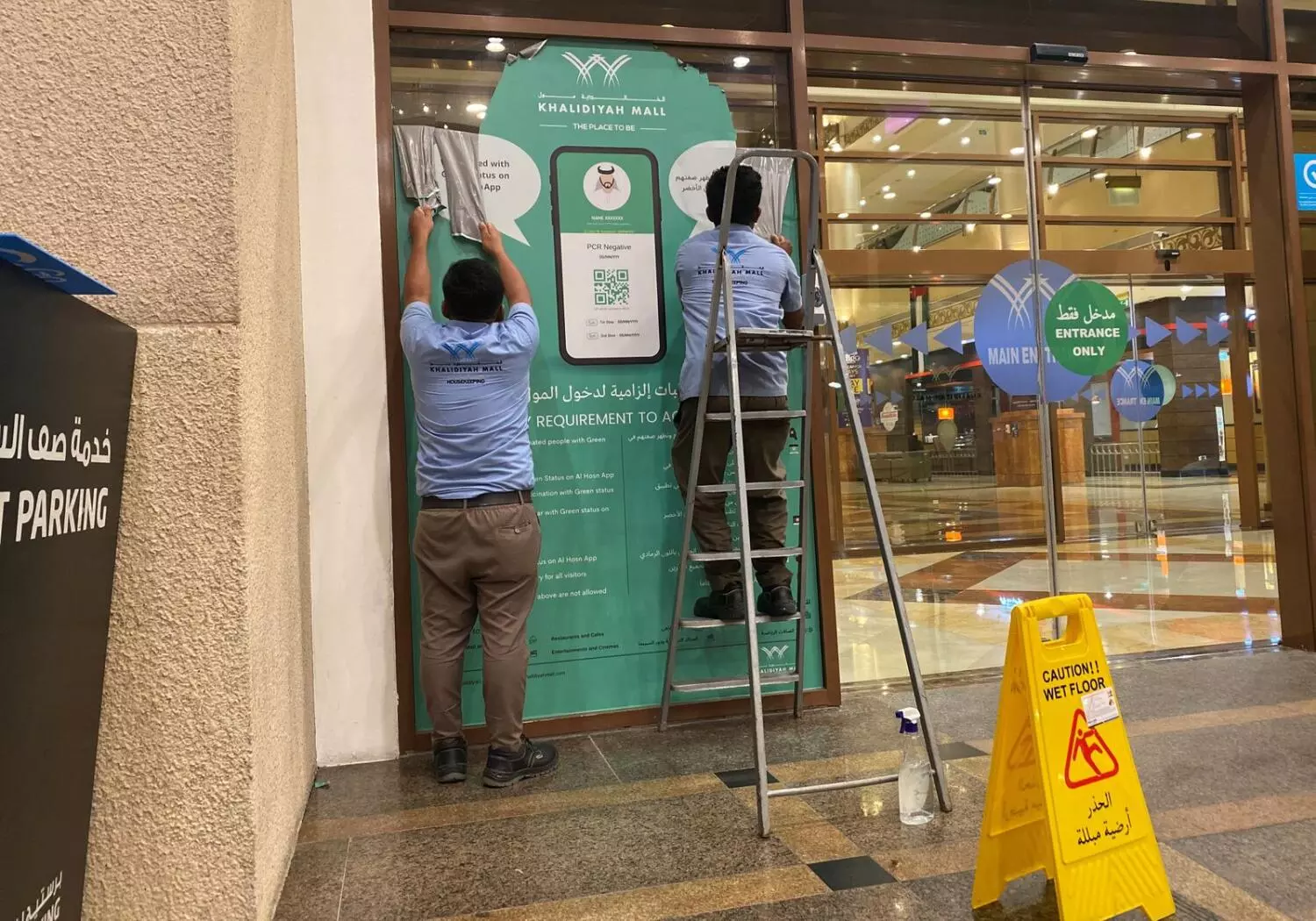 മാളുകളിൽനിന്ന് അൽ ഹുസ്ൻ ഗ്രീൻ പാസ് സ്റ്റിക്കറുകൾ നീക്കം ചെയ്തു തുടങ്ങി