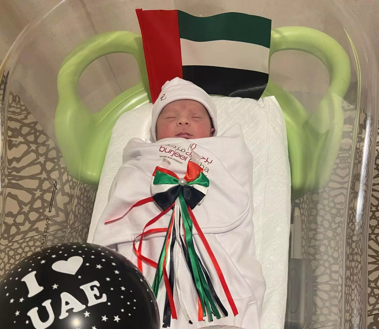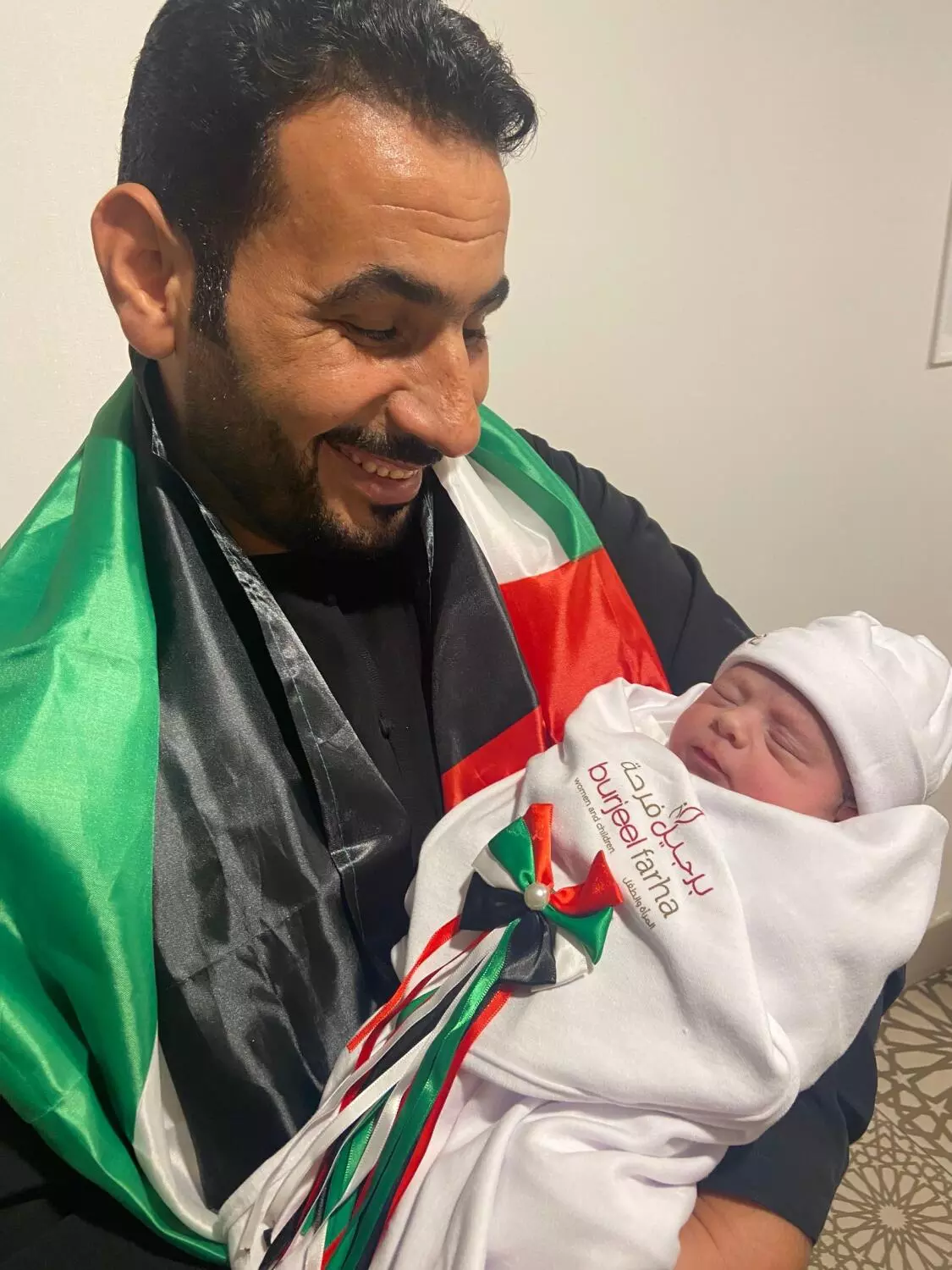 അബൂദബിയിൽ താമസിക്കുന്ന റീം അൽ സാലിഹും യൂസഫ് അലി അൽ ഹുസൈനുമാണ് അബൂദബിയിലെ ബുർജീൽ മെഡിക്കൽ സിറ്റിയിൽ പിറന്ന കുഞ്ഞിന്റെ മാതാപിതാക്കൾ. ദമ്പതികളുടെ എട്ടാമത്തെ കുഞ്ഞാണിത്. ദേശീയ ദിനത്തിൽതന്നെ കുഞ്ഞ് ജനിച്ചതിന്റെ സന്തോഷത്തിലാണ് മാതാപിതാക്കൾ.