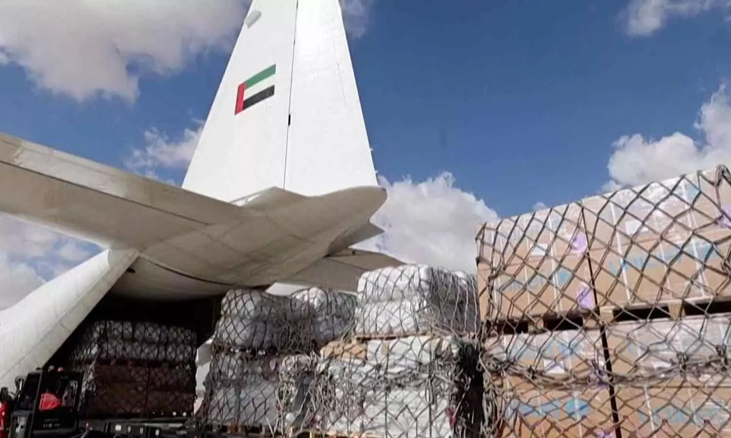 അവിടെ നിന്ന് റഫ അതിർത്തി മുഖേന വീട് നഷ്ടപ്പെട്ട് തെരുവിൽ താമസിക്കുന്ന ജനങ്ങളിലേക്ക് എത്തിക്കും. യു.എ.ഇ പ്രസിഡന്റ് ശൈഖ് മുഹമ്മദ് ബിൻ സായിദ് ആൽ നഹ്യാൻ പ്രഖ്യാപിച്ച ഗാലന്റ് നൈറ്റ്-3 ജീവകാരുണ്യ പദ്ധതിയുടെ ഭാഗമായാണിത്. ഇതിനകം 16ലക്ഷം വസ്ത്രങ്ങളും പുതപ്പുകളും ഗസ്സയിൽ എത്തിച്ചിട്ടുണ്ട്. ഇതിന് പുറമെയാണ് കൂടുതൽ സഹായം എത്തിക്കുന്നത്.