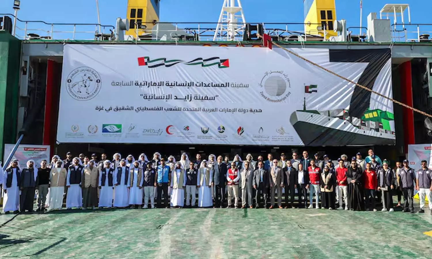 ഗസ്സയ്ക്കുള്ള 5820 ടൺ സഹായ വസ്തുക്കളുമായി യുഎഇ കപ്പൽ ഈജിപ്തിൽ