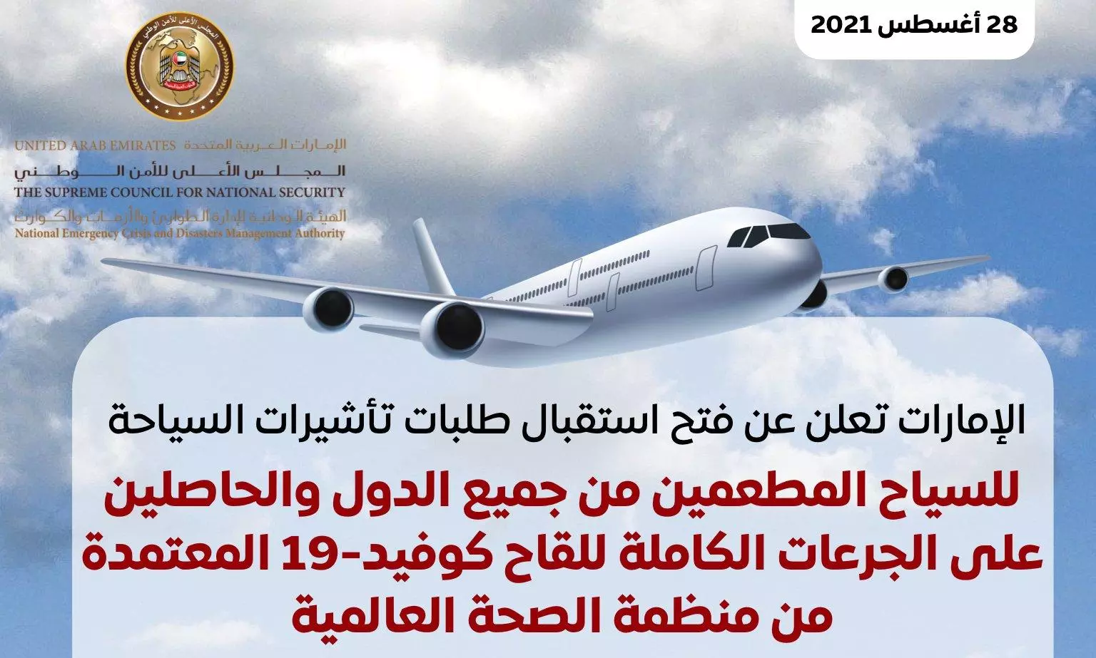 |ലോകാരോഗ്യ സംഘടന അംഗീകരിച്ച വാക്സിൻ രണ്ട് ഡോസ് സ്വീകരിച്ച ആർക്കും ടൂറിസ്റ്റ് വിസക്ക് അപേക്ഷിക്കാം
