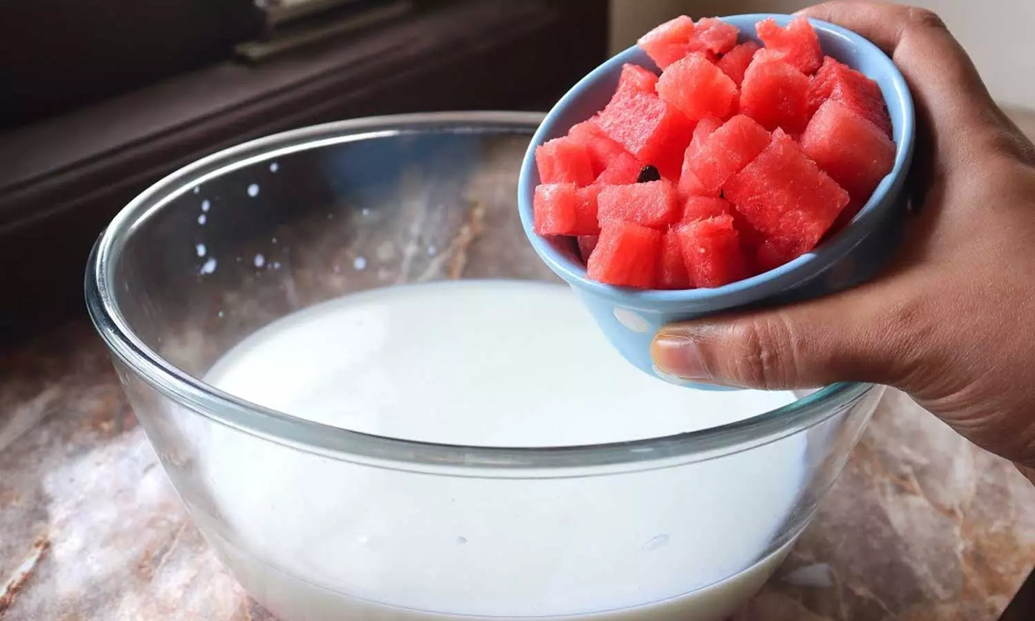 ആയുർവേദമനുസരിച്ച് തണ്ണിമത്തനും പാലും ഒരുമിച്ച് കഴിക്കുന്നത് വിപരീത ഫലം ചെയ്യും. പാലിൽ കൊഴുപ്പ്, വൈറ്റമിൻ ഡി, പ്രോട്ടീൻ എന്നിവ അടങ്ങിയിട്ടുണ്ട്. ഇത് അസിഡിറ്റി ഉള്ള പഴങ്ങളുമായി കലർത്തി കഴിക്കുന്നത് പ്രതിപ്രവർത്തനത്തിന് കാരണമാകും. ഇവ രണ്ടും ഒരുമിച്ചു കഴിക്കുന്നത് വയറിളക്കം, ഗ്യാസ്, വയറു വേദന എന്നിവക്ക് കാരണമാകുമെന്ന് ഡോക്ടർമാർ പറയുന്നു. തണ്ണിമത്തൻ ജലാംശം നൽകുന്നതാണെങ്കിലും, ഈ മിശ്രിതം കഠിനമായ വീക്കത്തിനും വെള്ളം നിലനിർത്തുന്നതിനും കാരണമാകും.