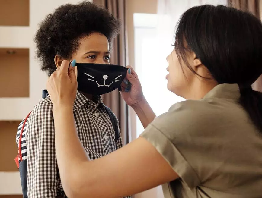 കഴുകി ഉപയോഗിക്കാന് കഴിയുന്ന കോട്ടണ് തുണികൊണ്ടുള്ള മാസ്ക് ഉപയോഗിക്കുന്നതാണ് കുട്ടികള്ക്ക് നല്ലത്. കൈകൊണ്ട് മാസ്ക് ഇടയ്ക്കിടയ്ക്ക് തൊട്ടുതൊട്ട് കളിക്കരുതെന്ന് കുഞ്ഞിനെ ഓര്മപ്പെടുത്തണം, പരിചയമില്ലാത്ത സ്ഥലമോ, സാധനങ്ങളോ തൊട്ടു കഴിഞ്ഞാല് കൈ കഴുകാന് ഓര്മിപ്പിക്കുക, സമപ്രായക്കാര്ക്കൊപ്പം കളിക്കുകയാണെങ്കില് മാസ്ക് ഒഴിവാക്കാതിരിക്കാനും സാമൂഹിക അകലം പാലിക്കാനും ഓര്മപ്പെടുത്തുക, സ്കൂള് വിട്ട് തിരിച്ചുവന്നാലും ശാരീരിക ശുചിത്വം പാലിക്കാനും നിര്ബന്ധിക്കുക, കൂടെ ബാഗും പുസ്തകങ്ങളും വീട്ടിലെ മറ്റ് വസ്തുക്കളുമായി ചേരാതെ മാറ്റിവെക്കാനും പഠിപ്പിക്കുക.