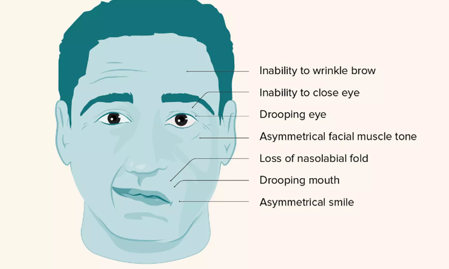 . മുഖത്തിന്റെ ഒരു ഭാഗത്ത് മാത്രം അനുഭവപ്പെടുന്ന ബലഹീനത