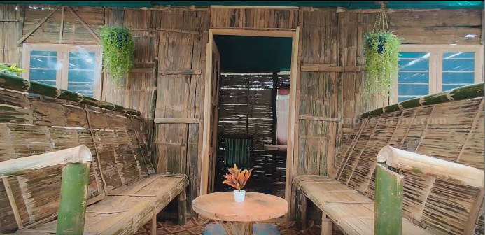 |കട്ടിലുകളും ഇരിപ്പിടങ്ങളുമെല്ലാം മുളയിലാണ് തീർത്തിരിക്കുന്നത്.