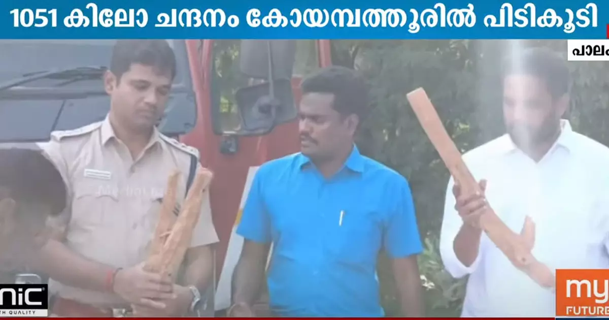 കേരളത്തിൽ നിന്ന് കടത്തിയ 1051 കിലോ ചന്ദനം കോയമ്പത്തൂരിൽ പിടികൂടി