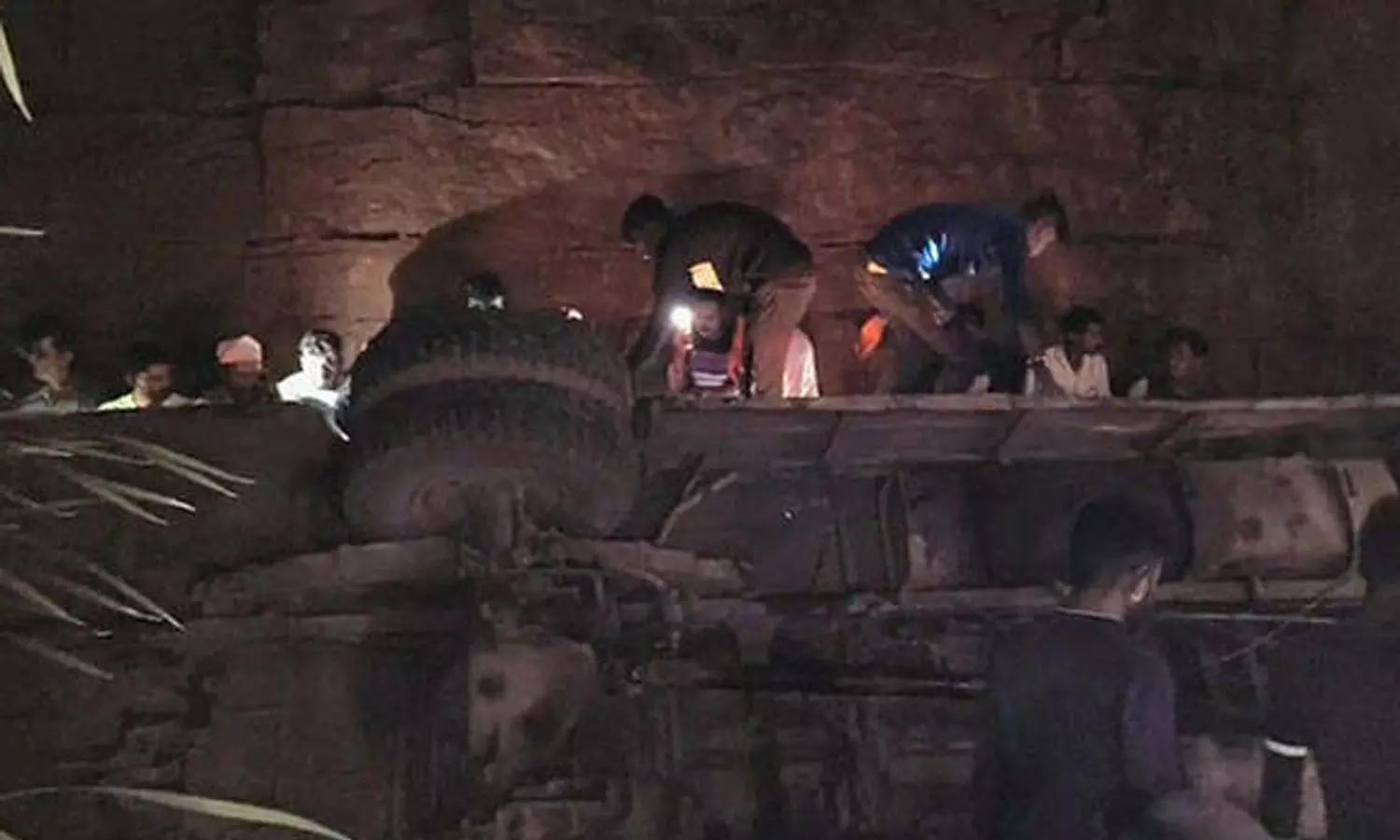 ചൊവ്വാഴ്ച രാത്രിയാണ് അപകടം നടന്നത്. നാട്ടുകാരും പൊലീസും ചേര്ന്നാണ് യാത്രക്കാരെ പുറക്കെടുത്ത് ആശുപത്രിയില് എത്തിച്ചത്. ആശുപത്രിയിലെത്തിക്കുന്ന സമയത്ത് 11 പേര് മരിച്ചിരുന്നു. ബാക്കി മൂന്ന് പേര് ചികിത്സയിലിരിക്കെയാണ് മരിച്ചത്. പരിക്കേറ്റവരില് ആറുപേരുടെ നില ഗുരുതരമാണെന്നാണ് റിപ്പോര്ട്ട്.