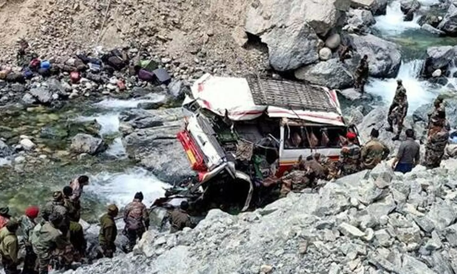 ഇന്ത്യ - ചൈന അതിർത്തിയിലെ തുർതുക് സെക്ടറിലേക്കു പോകും വഴി ഇവർ സഞ്ചരിച്ച വാഹനം നിയന്ത്രണം വിട്ട് ഷ്യോക് നദിയിലേക്കു വീഴുകയായിരുന്നു. 26 സൈനികരാണു വാഹനത്തിലുണ്ടായിരുന്നത്. ഇതിൽ ചിലർക്ക് ഗുരുതര പരുക്കേറ്റിട്ടുണ്ട്. വെള്ളിയാഴ്ച രാവിലെ ഒമ്പതിനാണ് സംഭവം.