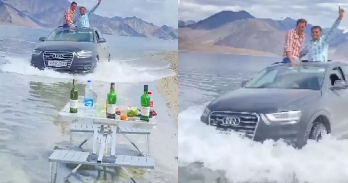 മൂന്ന് വിനോദസഞ്ചാരികൾ തങ്ങളുടെ എസ്.യു.വി കാർ പാംഗോങ് തടാകത്തിലൂടെ ഓടിച്ചുകയറ്റുന്ന വീഡിയോ ആണ് ഇപ്പോൾ സോഷ്യൽ മീഡിയയിൽ പ്രചരിക്കുന്നത്. ജിഗ്മത് ലഡാക്കി എന്ന വ്യക്തിയാണ് ലഡാക്കിലെ പാംഗോങ് തടാകത്തിലൂടെ വിനോദസഞ്ചാരികൾ കാർ ഓടിക്കുന്ന വീഡിയോ ട്വിറ്ററിൽ പങ്കുവെച്ചത്.