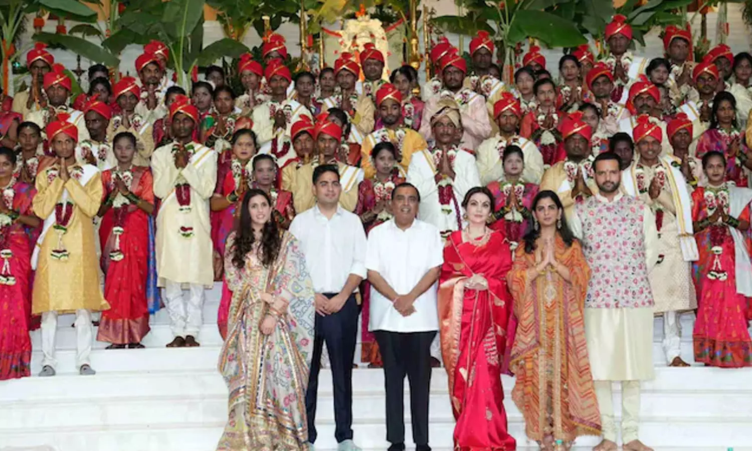 ശതകോടീശ്വരന് മുകേഷ് അംബാനിയുടെ ഇളയമകന് അനന്ദ് അംബാനിയുടെ വിവാഹത്തിന് മുന്നോടിയായി 50 ദമ്പതികളുടെ സമൂഹവിവാഹം നടത്തിയിരിക്കുകയാണ് അംബാനി കുടുംബം. ചൊവ്വാഴ്ച മഹാരാഷ്ട്രയിലെ താനെയിലെ റിലയൻസ് കോർപ്പറേറ്റ് പാർക്കിൽ വെച്ച് നടന്ന വിവാഹചടങ്ങുകൾ സോഷ്യൽ മീഡിയയിൽ വൈറലായിക്കഴിഞ്ഞു. ഓരോ ദമ്പതികൾക്കും സ്വർണവും വെള്ളിയാഭരണങ്ങളും ഒരു വർഷത്തേക്ക് വീട്ടിലേക്കുള്ള സാധനങ്ങളുമാണ് അംബാനി കുടുംബം സമ്മാനമായി നൽകിയത്.