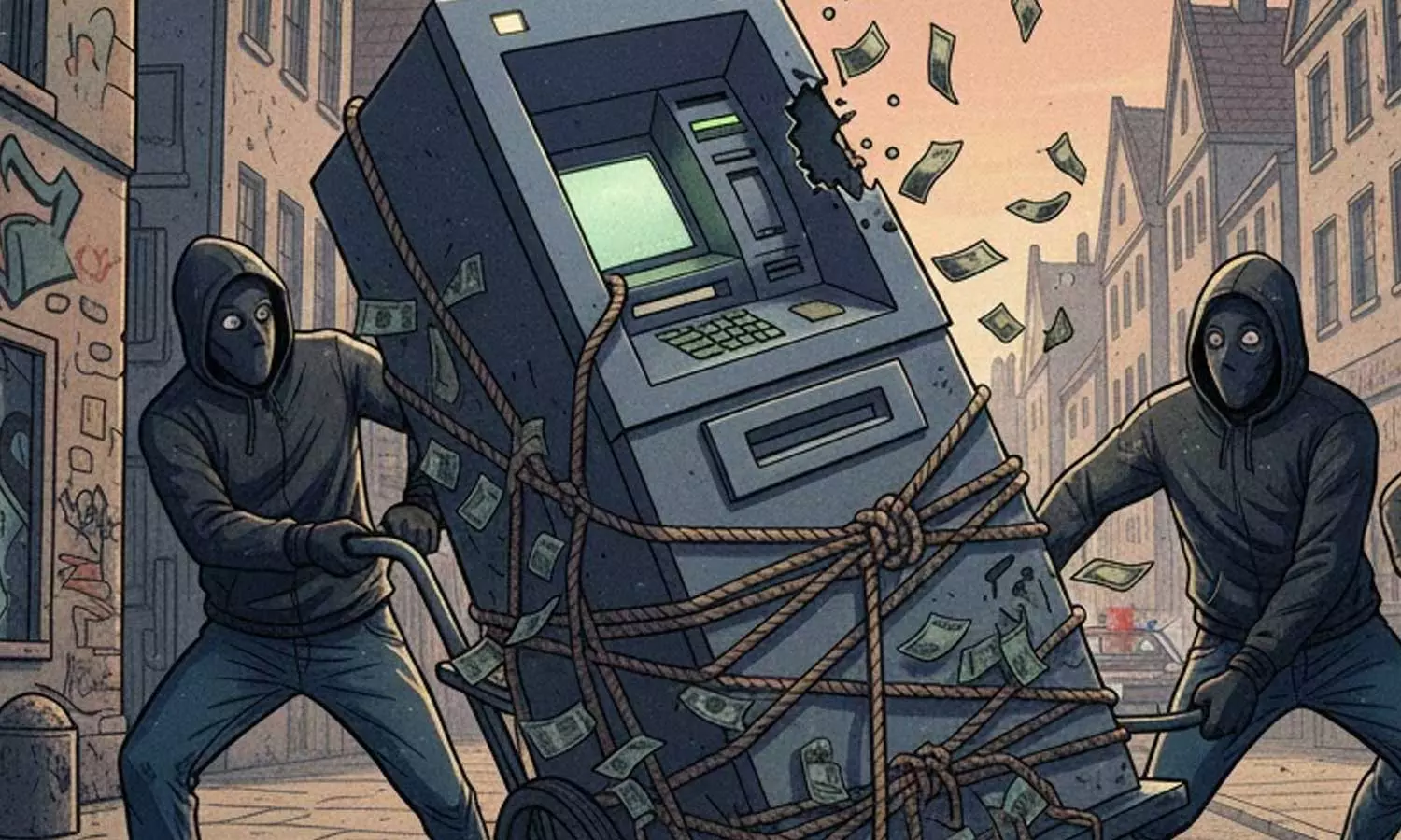 അർധരാത്രി കൈവണ്ടിയുമായി എത്തി,എടിഎം മെഷീൻ അഴിച്ചെടുത്ത് മുങ്ങി; മൂന്ന് പേര്ക്കായി തിരച്ചിൽ
