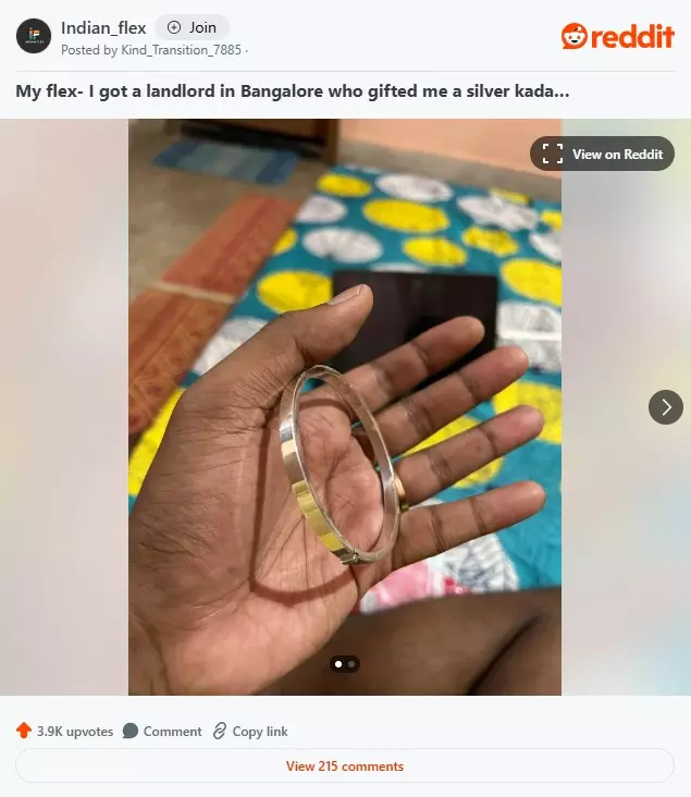 അഡ്വാൻസ് തുകയ്ക്കൊപ്പം വാടകക്കാരന് വെള്ളി വള സമ്മാനമായി നൽകി വീട്ടുടമ; ബില്യണിൽ ഒരാളെന്ന് നെറ്റിസൺസ്