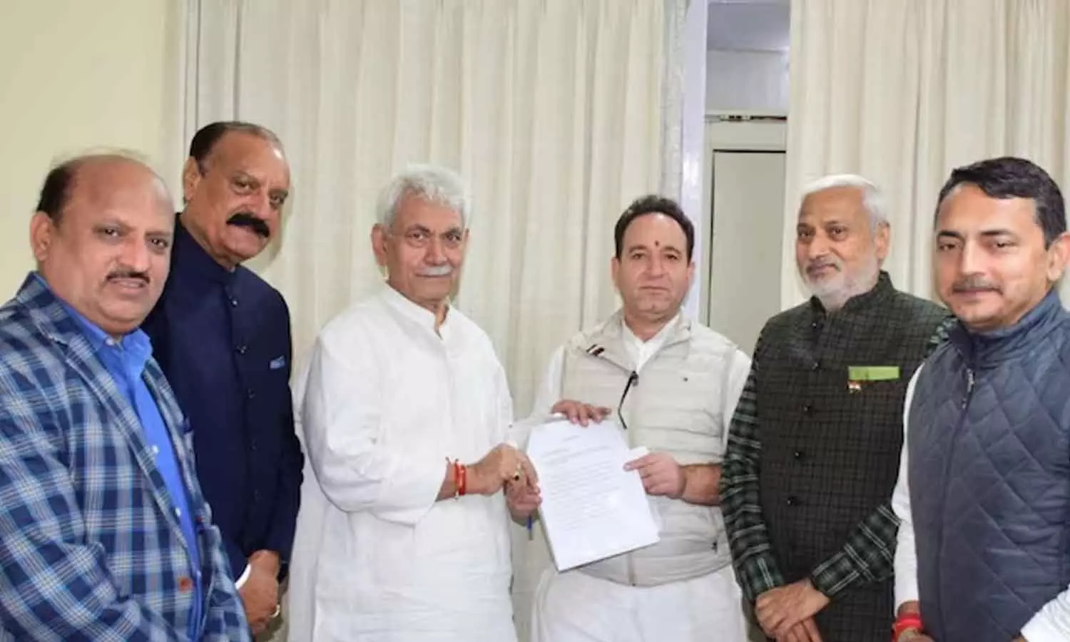 |ജമ്മു കശ്മീർ പ്രതിപക്ഷനേതാവ് സുനിൽ ശർമയുടെ നേതൃത്വത്തിലുള്ള പ്രതിനിധിസംഘം ലഫ്റ്റനന്റ് ഗവർണർ മനോജ് സിൻഹയെ സന്ദർശിച്ച് നിവേദനം നൽകി