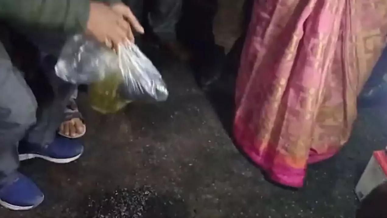 Gravel sample being taken for test after MLA sat on protest demanding probe in the construction of poor quality of roads. pic.twitter.com/pKvGkqIccG